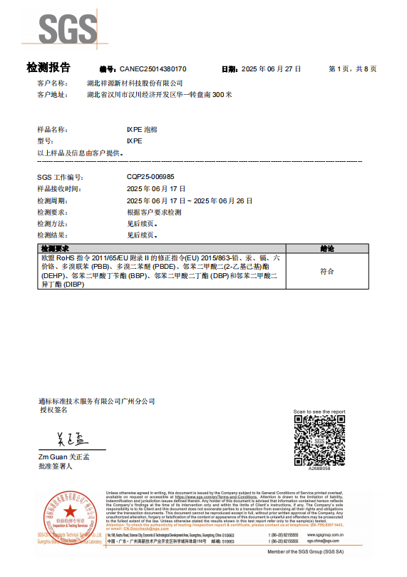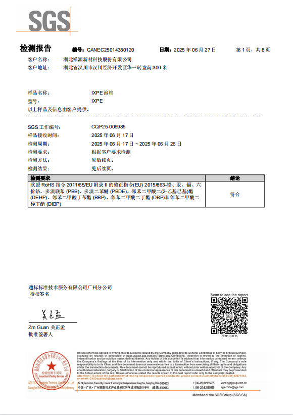IXPE 白色泡棉 ROHS 檢測報(bào)告