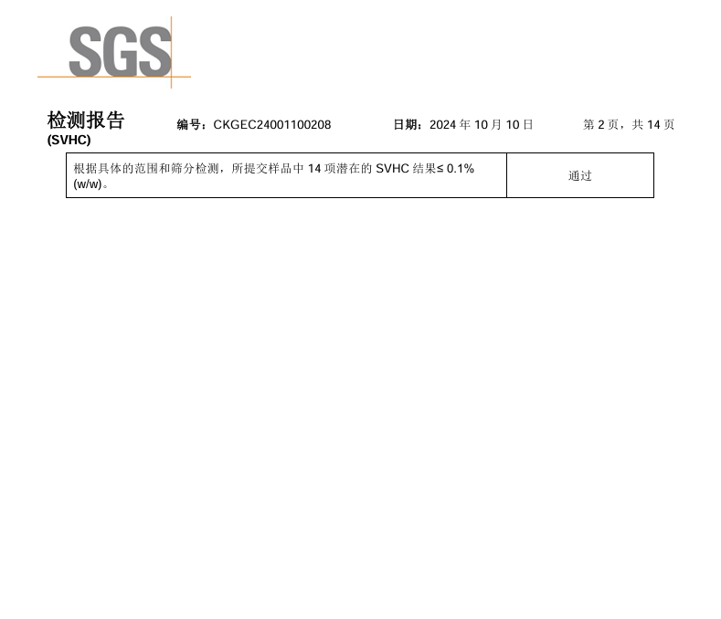 PU SVHC 檢測報(bào)告