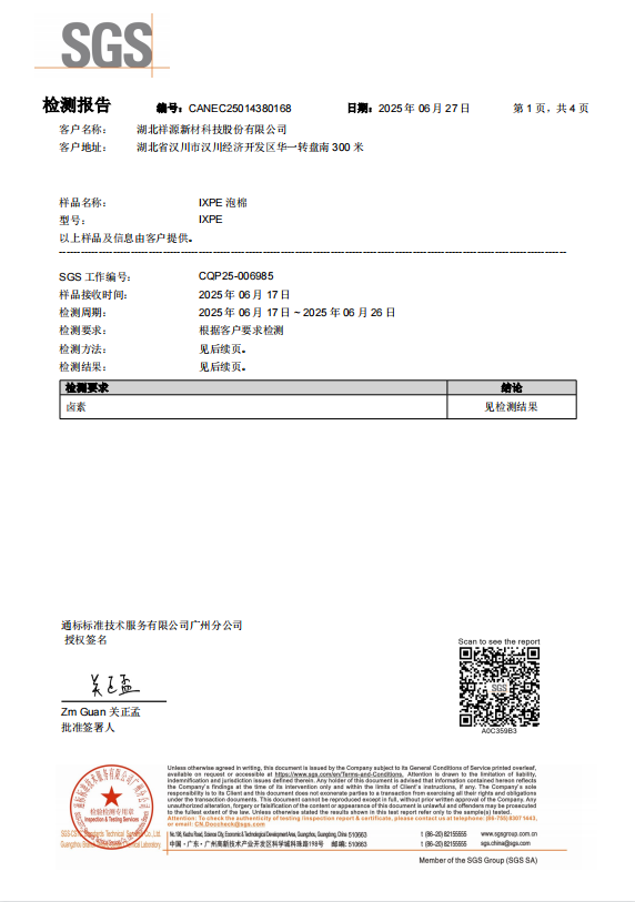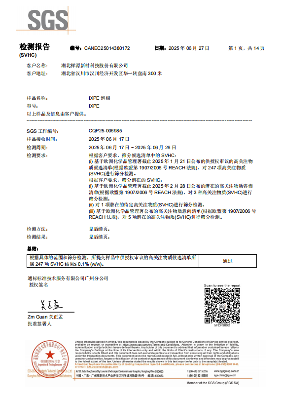 IXPE 白色泡棉 SVHC檢測報(bào)告
