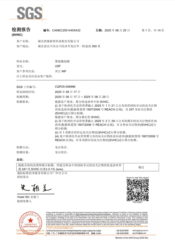 硅膠泡棉SSF SVHC檢測報(bào)告